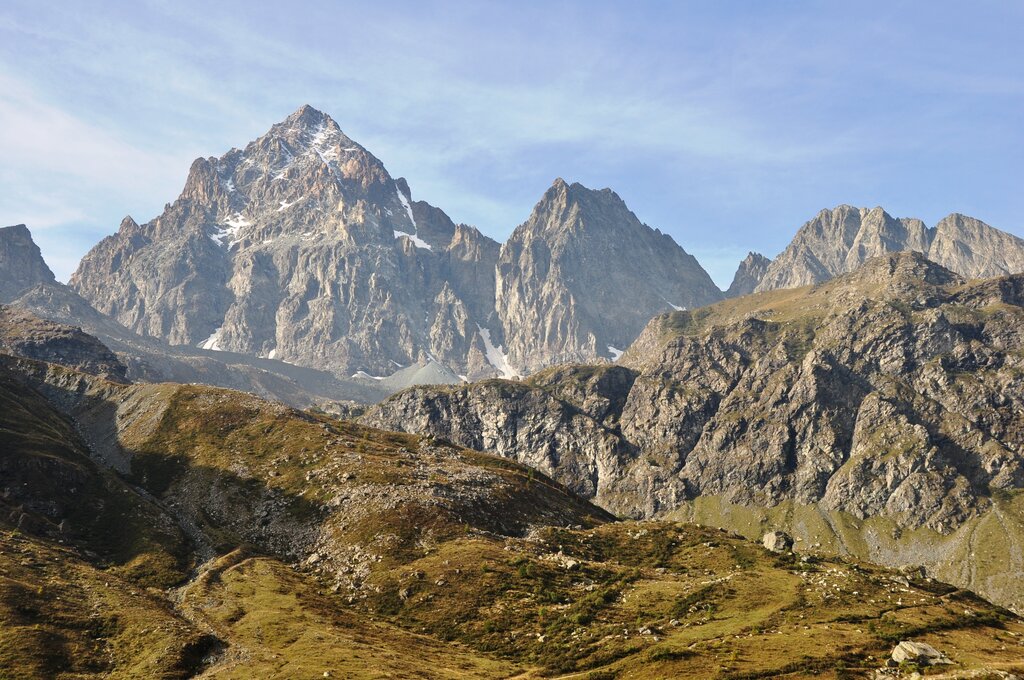 Si attraversano ambienti molto belli e vari: dai pini cembri del Bosco dell’Alevè si passa alle pietraie e ai laghetti dell’alto Vallone delle Giargiatte, poi si arriva ai piedi della gigantesca parete orientale del Monviso.
