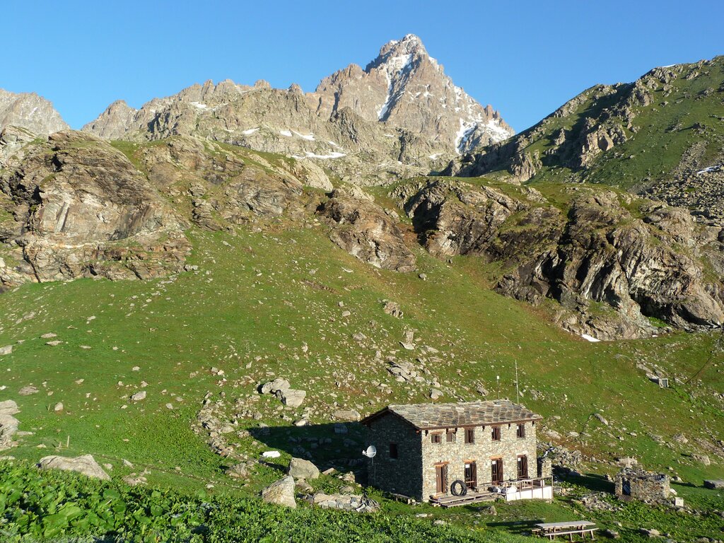 Nei pressi del lago dell'Alpetto, il moderno rifugio sorge vicino alla prima struttura ricettiva realizzata nel 1866 dal Cai come appoggio per la salita al Monviso dalla Valle Po.